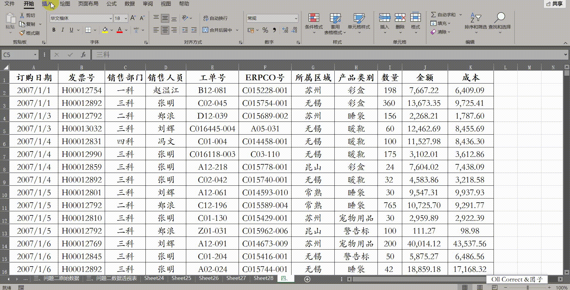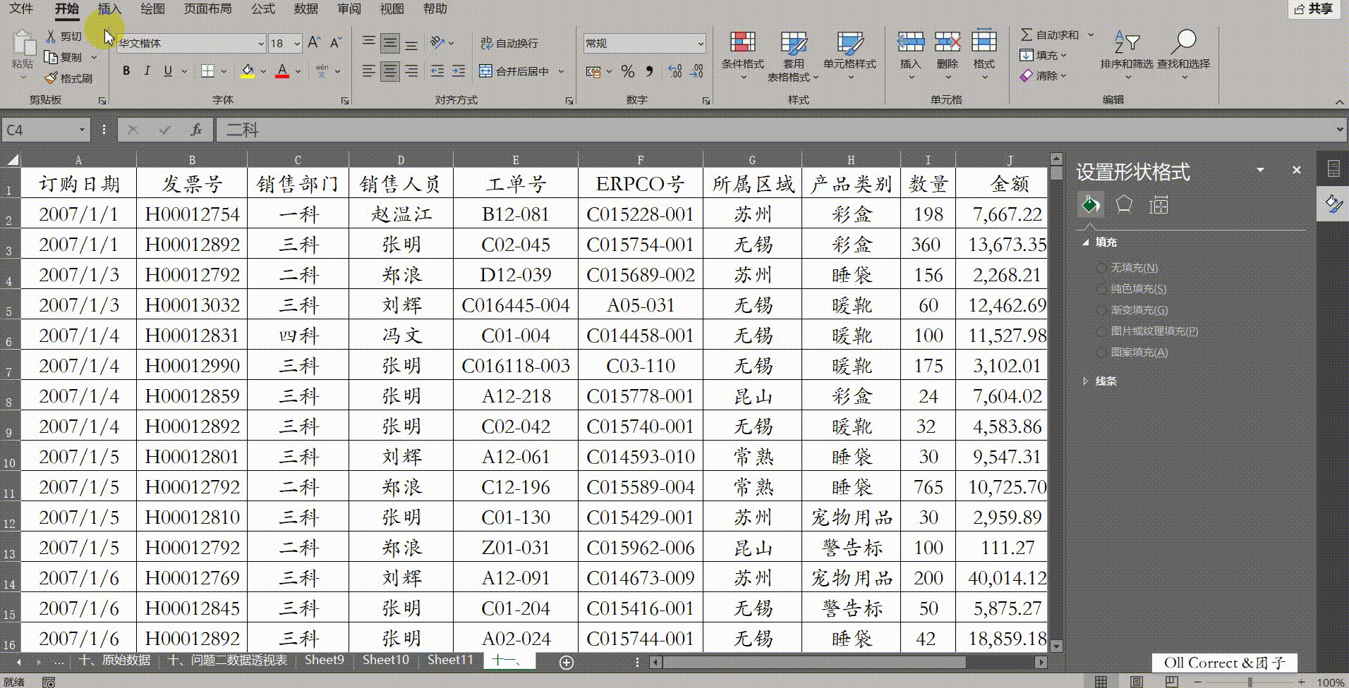 场景需求: Excel默认对文本型数据采用"拼音"(中文环境)或"字母"(英文环境)顺序进行排序。但在实际业务中,部门名称往往带有特定的行政层级逻辑(如一科、二科、三科、四科)。如果按照默认拼音排序,"二科"(Er)可能会排在"一科"(Yi)之前,导致报表逻辑混乱,切片器上的按钮顺序也会显得杂乱无章。为了让Excel"听懂"我们特定的排序规则,需要利用"自定义序列"功能来通过底层逻辑干预前端的显示顺序。