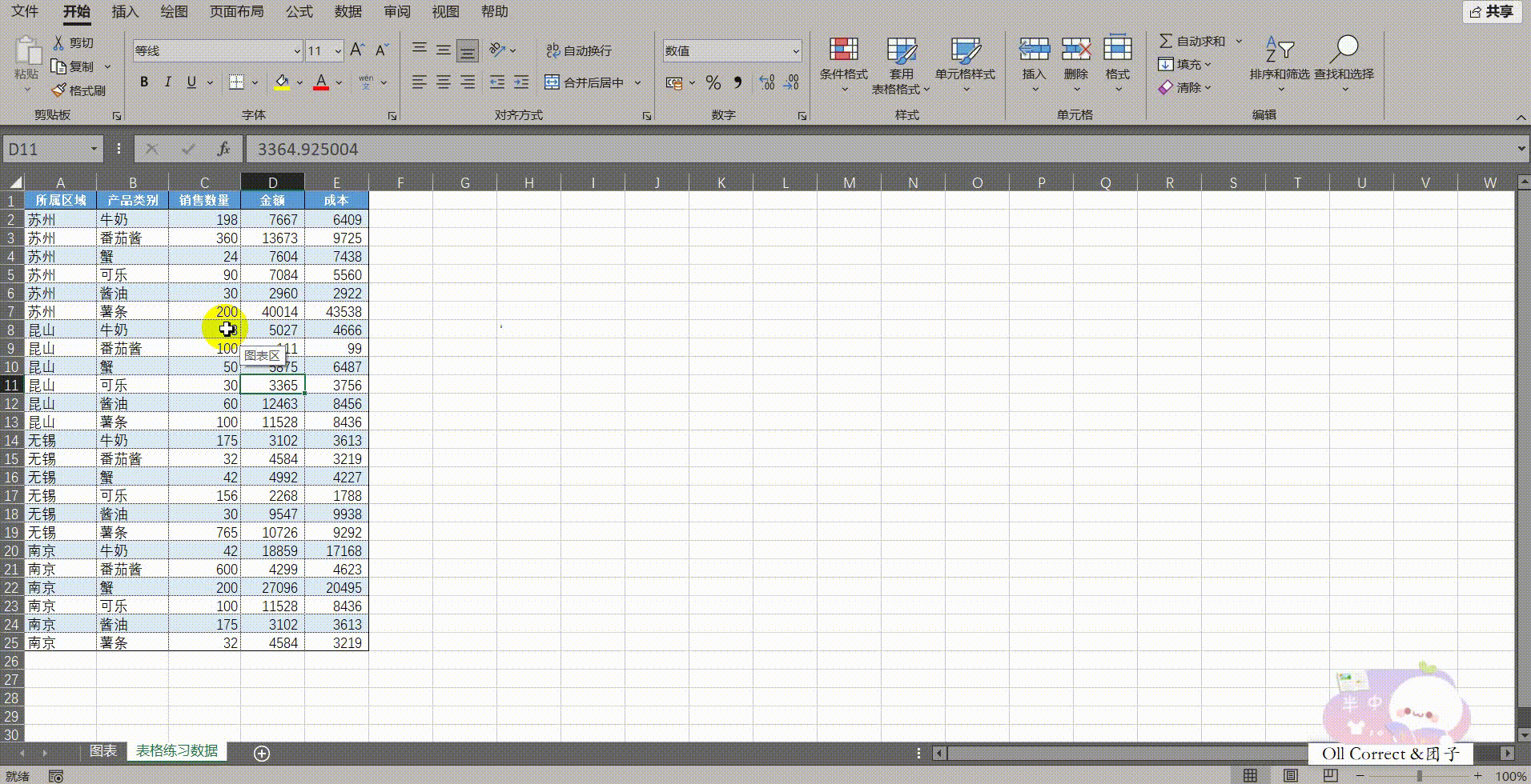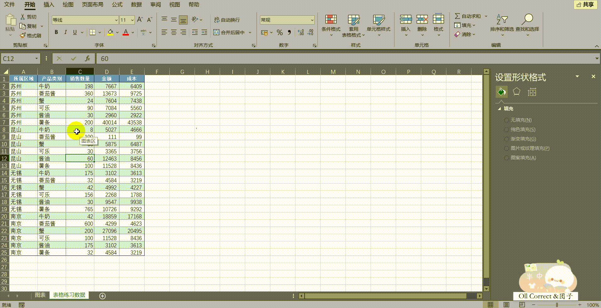 操作步骤: 若需将表格还原,只需点击表格内任意单元格,进入顶部出现的【表设计】选项卡,在工具组中点击【转换为区域】,并在弹出的提示框中点击【是】即可(此时格式虽保留,但已失去表的动态属性)。若要制作交互图表,则保持其为"表格"状态,点击【表设计】选项卡下的【插入切片器】,勾选【所属区域】等维度。接着,选中需要分析的数据列(如"产品类别"和"销售数量"),插入一个图表。关键的排版步骤在于:右键点击图表区域,选择【设置图表区域格式】,在右侧面板中点击【属性】图标(大小与属性),勾选【不随单元格改变位置和大小(++D++)】。完成设置后,将切片器与图表并排摆放。此时点击切片器筛选数据,表格行会隐藏,图表内容会动态变化,但图表本身的位置和大小将保持固定,不会因为表格行的隐藏而发生错位或变形,从而形成一个稳定的交互式数据看板。