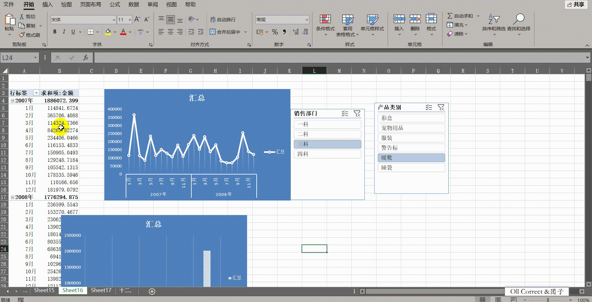 问题一:如何利用"报表连接"功能,用一套切片器同时控制折线图和柱形图?