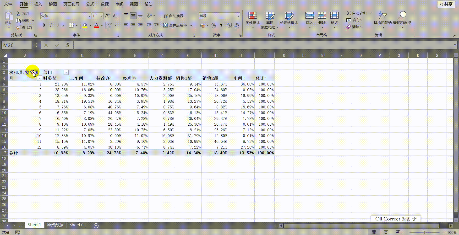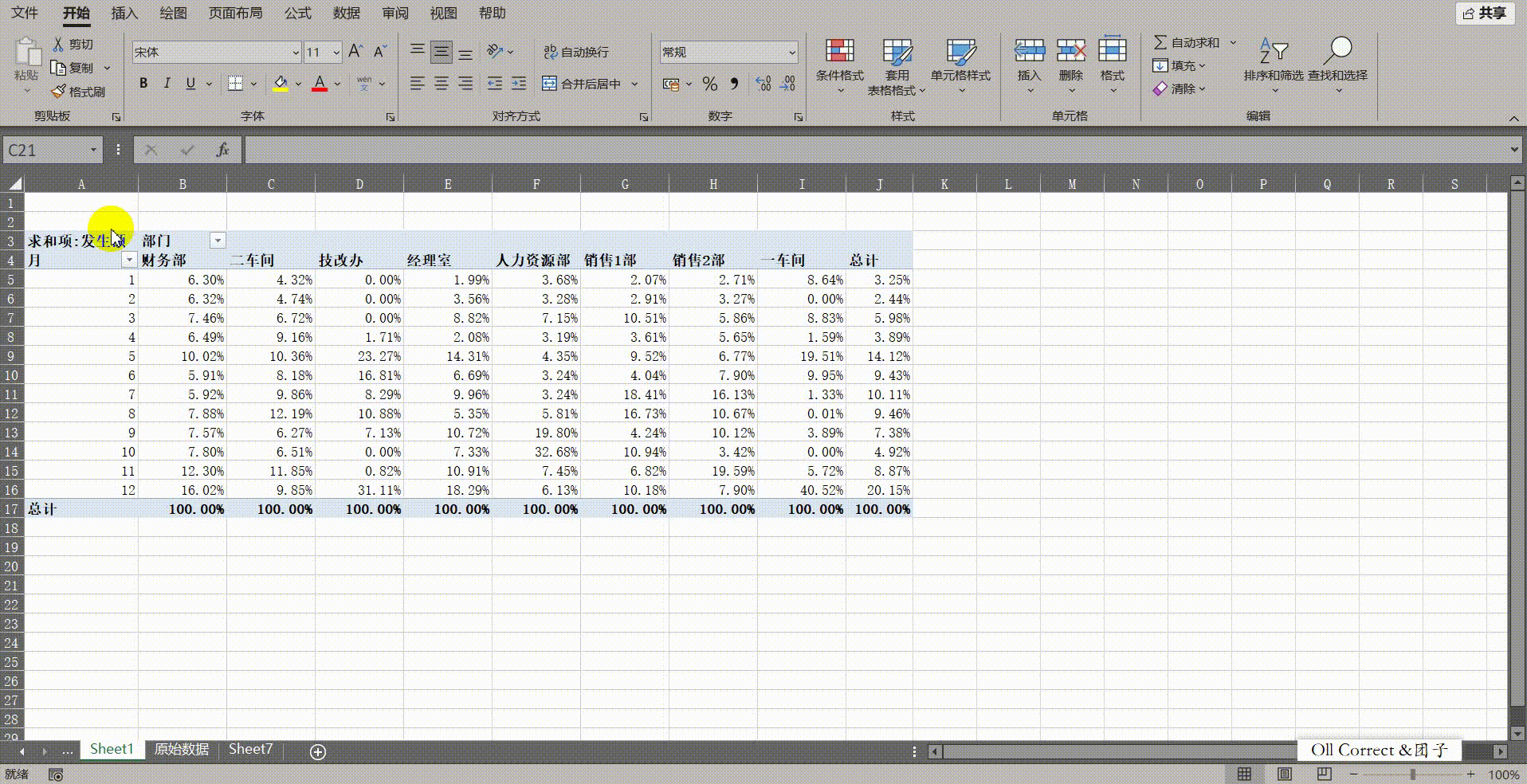 列汇总的百分比
