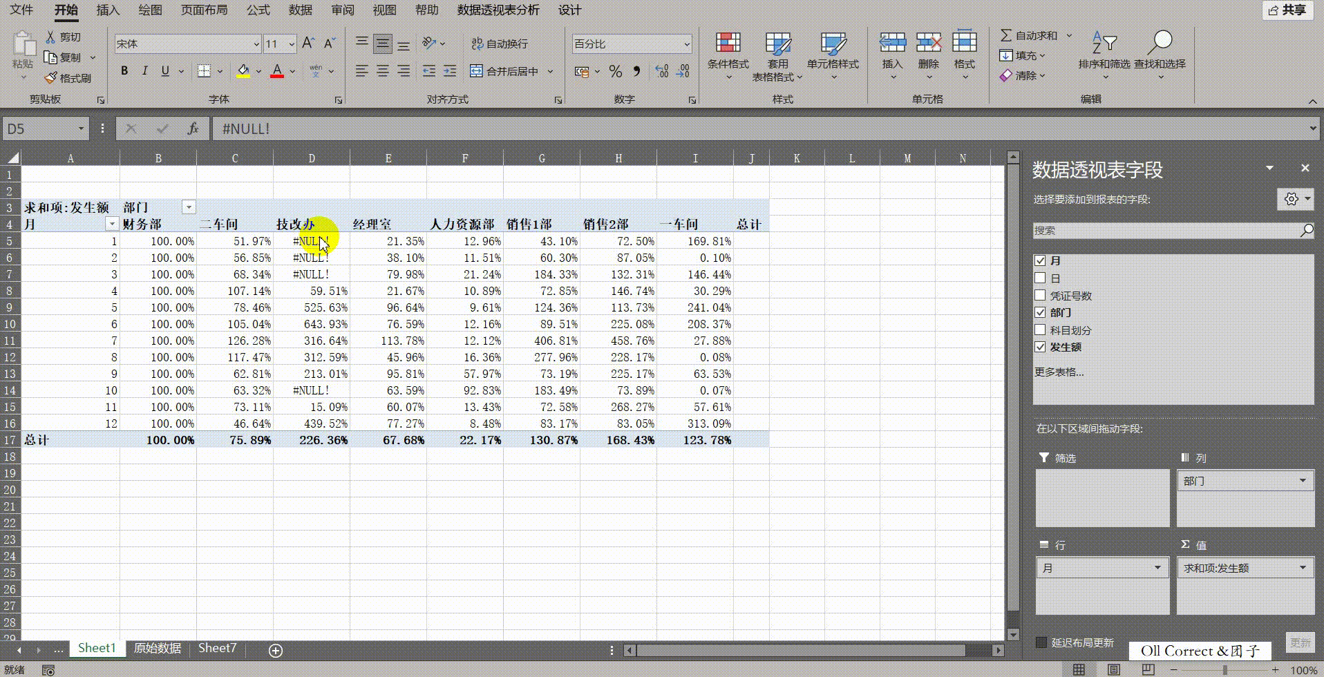 问题七:透视表里有些单元格显示#NULL!或错误代码,而且无法直接按Delete键删除,如何优化显示?