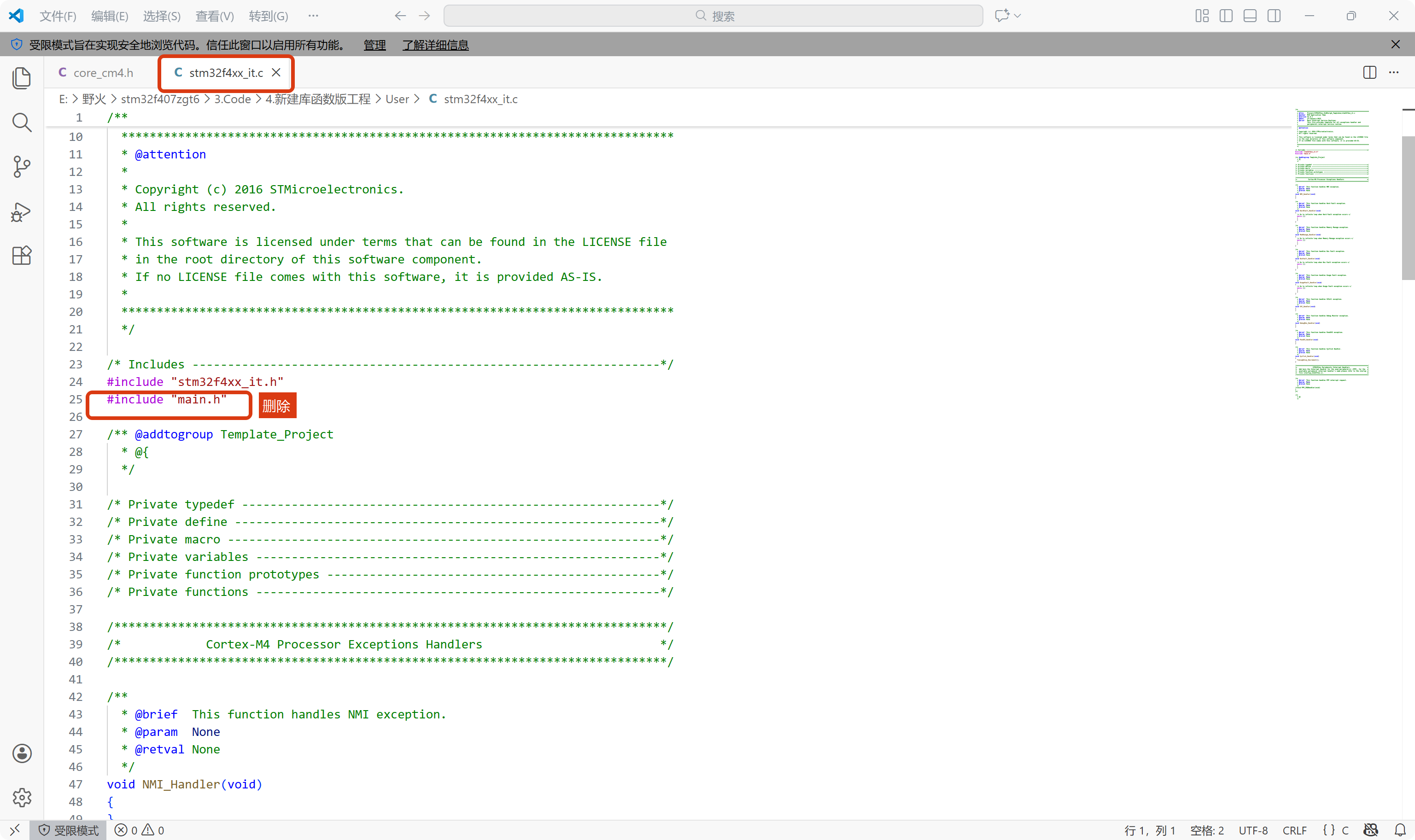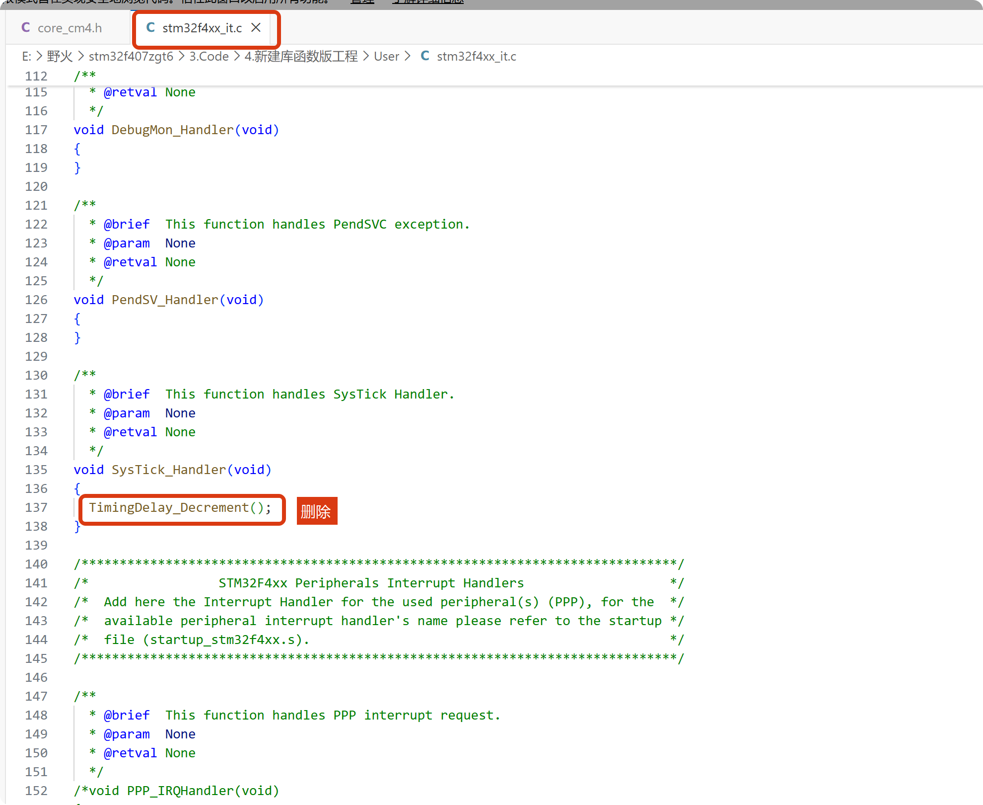 并删除stm32f4xx_it.c中的一些代码