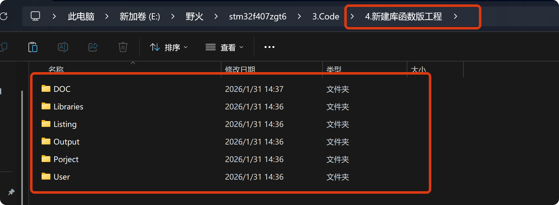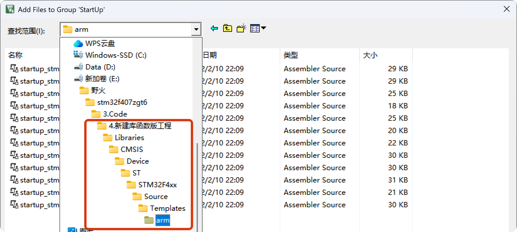 在此文件夹中添加汇编写的启动文件,当前使用的芯片是stm32f407
