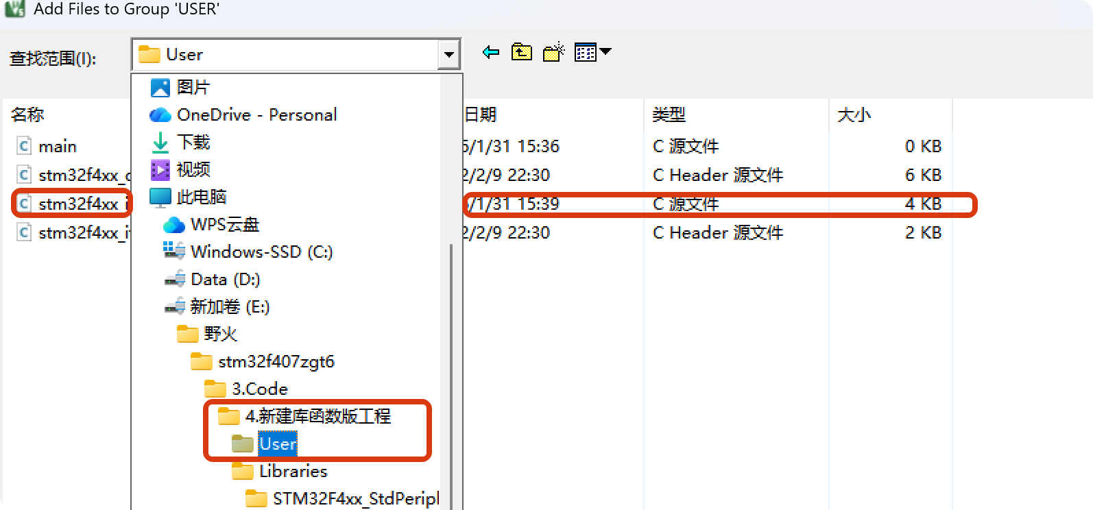 stm32f4xx_fsmc.c和stm32f4xx_fmc.c,说明 ST 这套库同时兼容两种命名/外设差异,但对某个具体芯片只能用其中一个,不能两个都无脑加进工程。