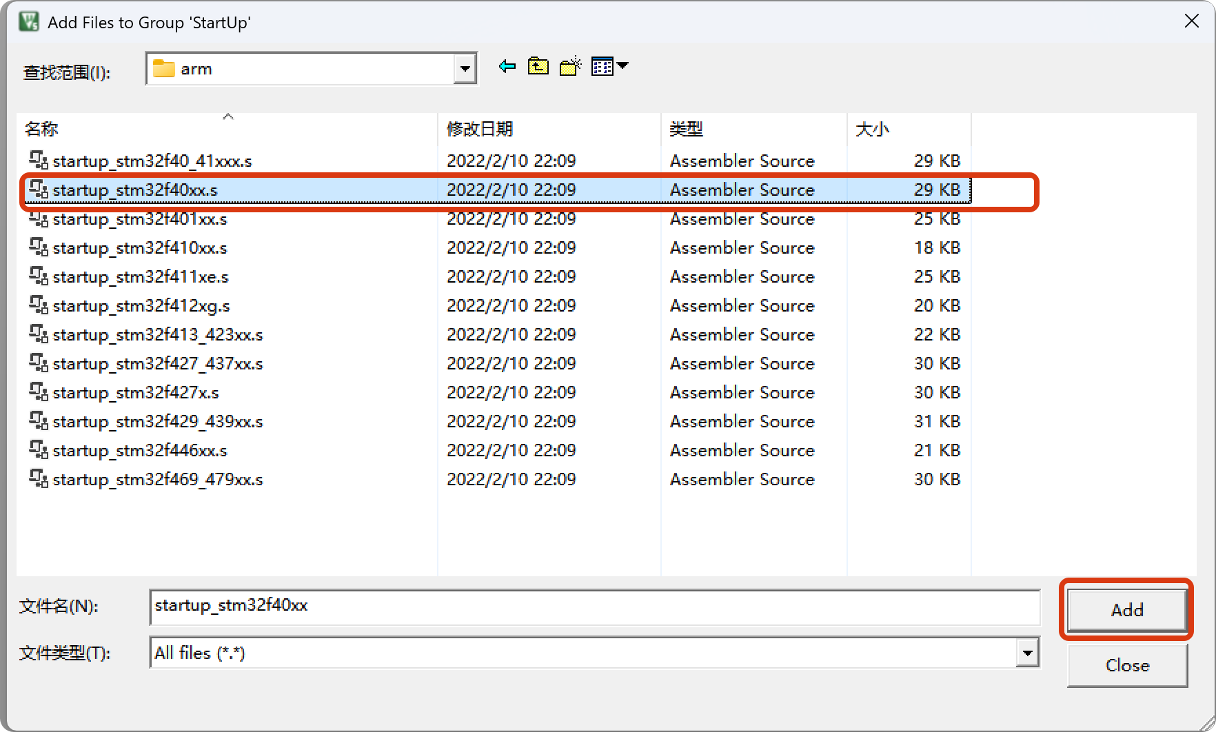 添加全部的固件库的文件