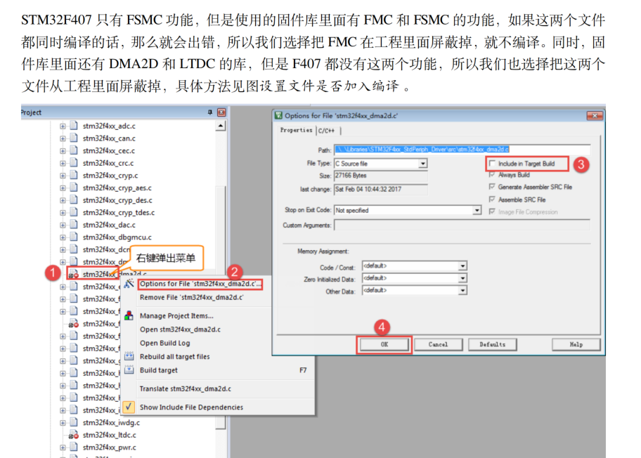 下方调试时也会提到,把stm32f4xx_fmc.c也不加入编译。