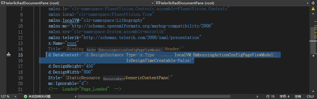 因为我在C#代码中也指定了DataContext,给我的感觉就是这里的d:DataContext=...并没有起作用,以下是学习到的知识点: