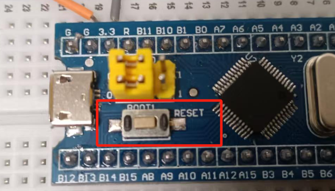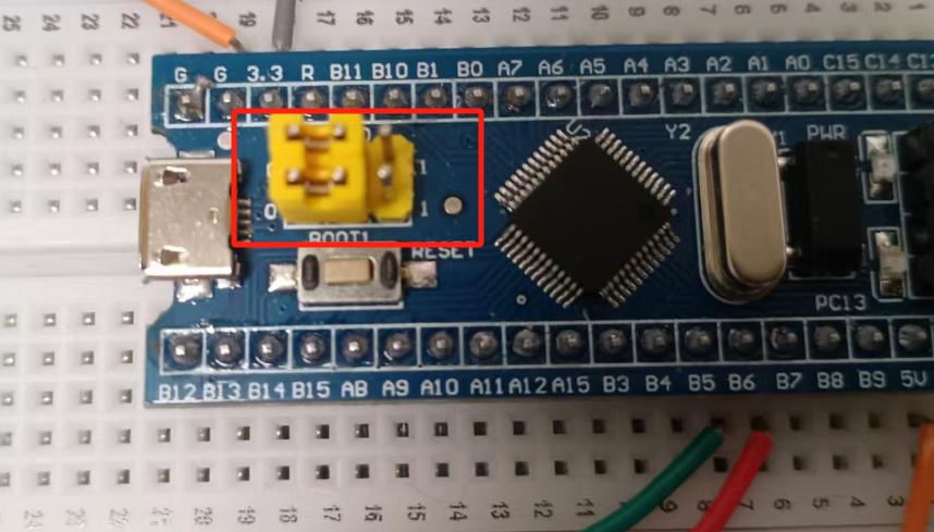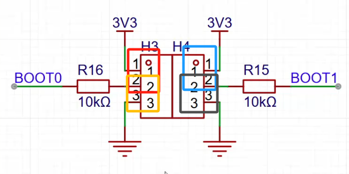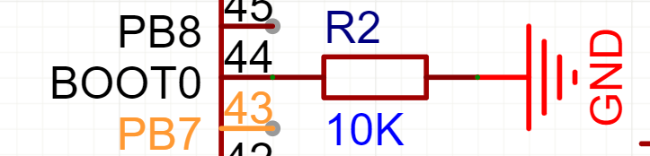 我们只需要从主Flash开始读取程序,因此只需要BOOT=0的烧录方式,也就是把BOOT0置低电平。这样即可: