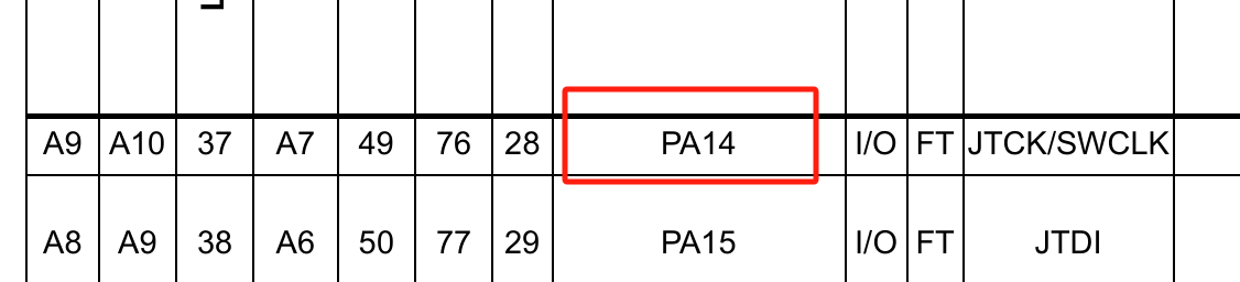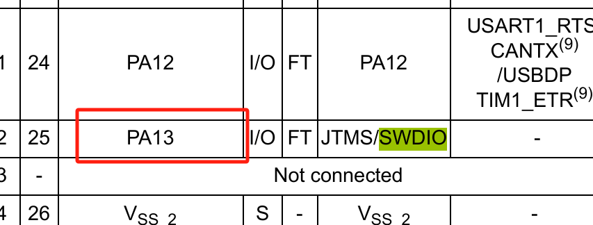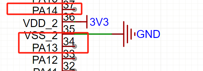 烧录的时候需要SWCLK SWDIO两个引脚,因此去手册找这两个引脚对应的芯片内引脚