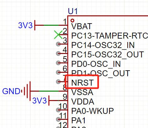 接收这个复位信号的引脚是NRST,N代表低电平有效,RST是reset的简写。