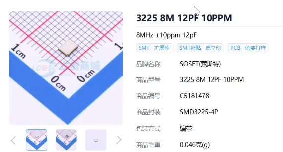 都是固定的,记住就好,注意这个电容,选型号的时候会告诉你,比如这款3225,就要用12pF的电容。