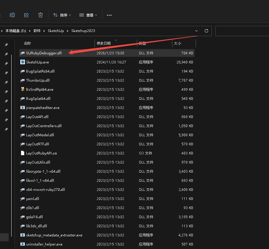 下载SURubyDebugger.dll,经它放到软件根目录(如何下载去查看参考资料)