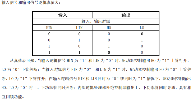 - HIN与LIN均为高电平有效,均内置200kΩ下拉电阻。