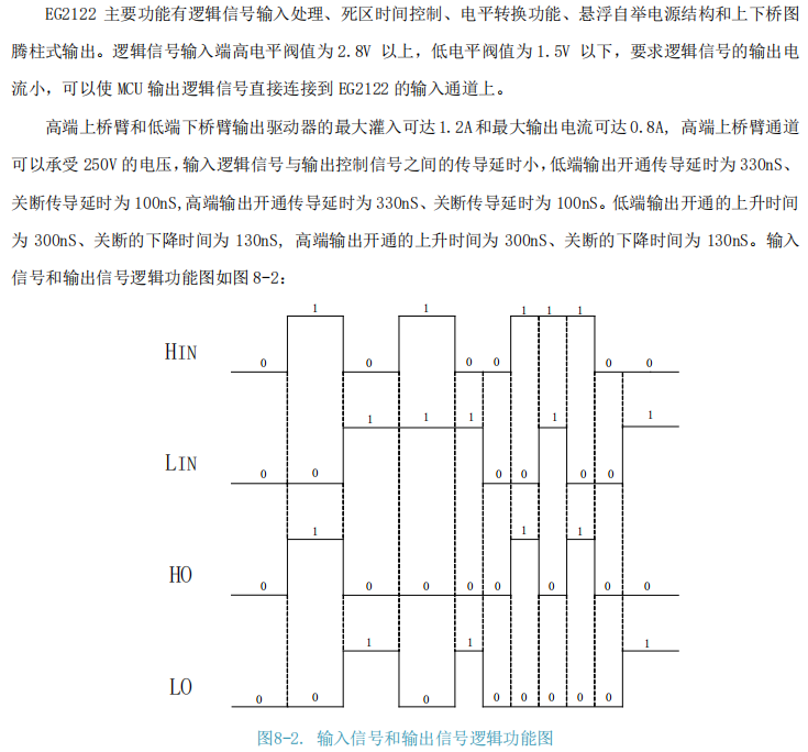 EG2122 通过 "拓宽VCC范围至8V" 与 "采用标准同相输入逻辑" 两大务实改进,成功塑造了其高适应性、易用性的鲜明特点。