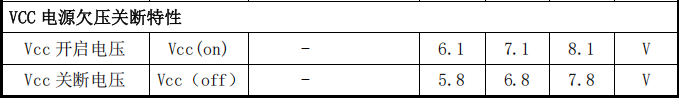 VCC开启/关断电压:7.1V / 6.8V(典型)