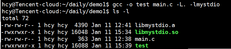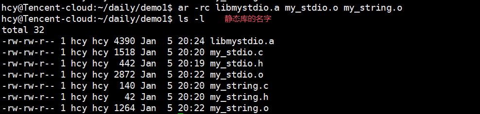 ar -rc libmystdio.a my_stdio.o my_string.o # 生成静态库 libmystdio.a