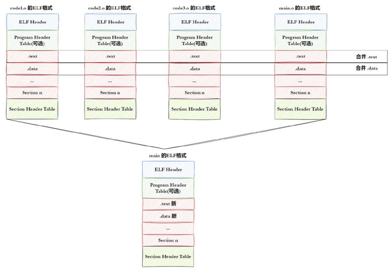 静态链接是将多个.o文件(包括静态库中的.o)合并为一个可执行文件的过程: