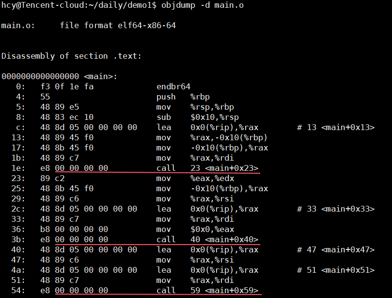 我们可以用objdump命令查看编译后的.o⽬标⽂件 :