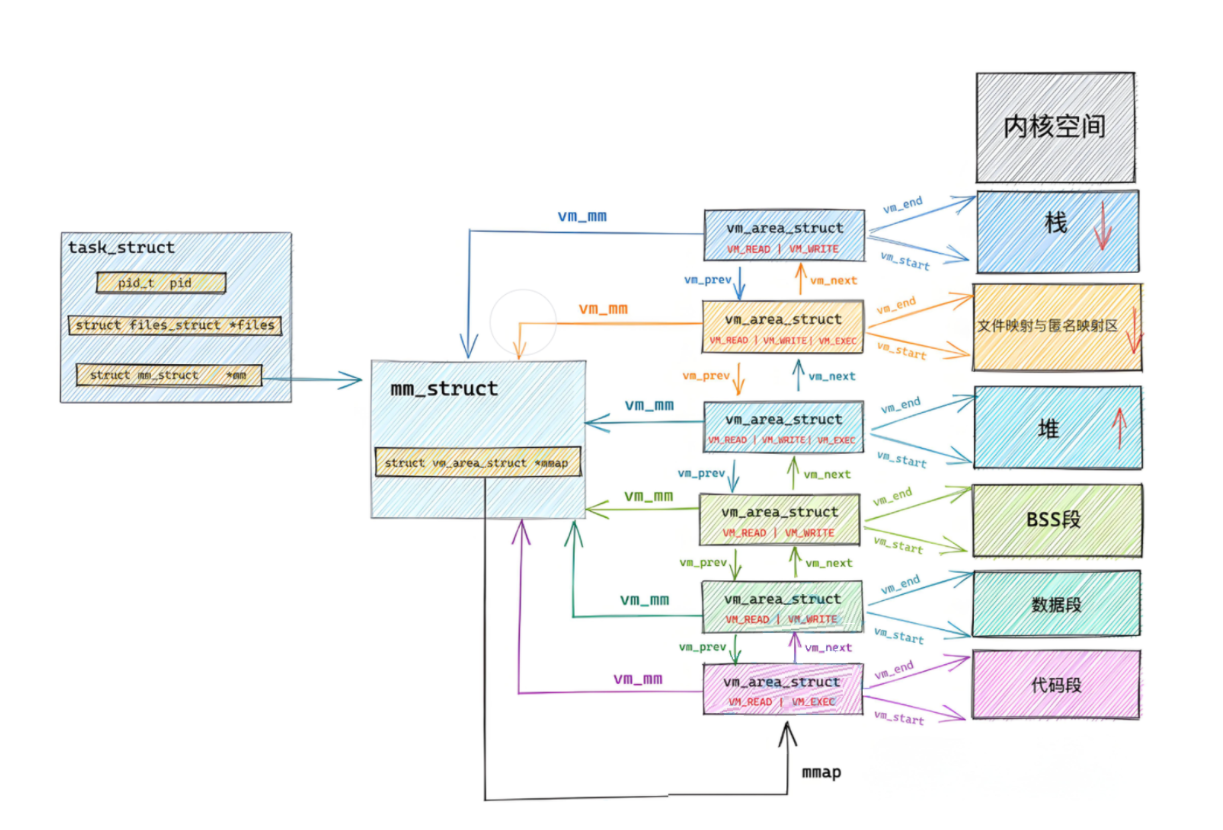 操作系统加载可执行程序时,先为进程创建 PCB(进程控制块),再在 PCB 中初始化mm_struct(内存管理结构体),接着基于 ELF 文件的 LOAD 段信息,通过mm_struct构建进程的虚拟地址空间(包括页表):