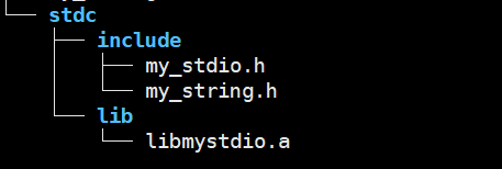 gcc main.c -lmystdio # -l后接库名(去掉lib前缀和.a后缀)