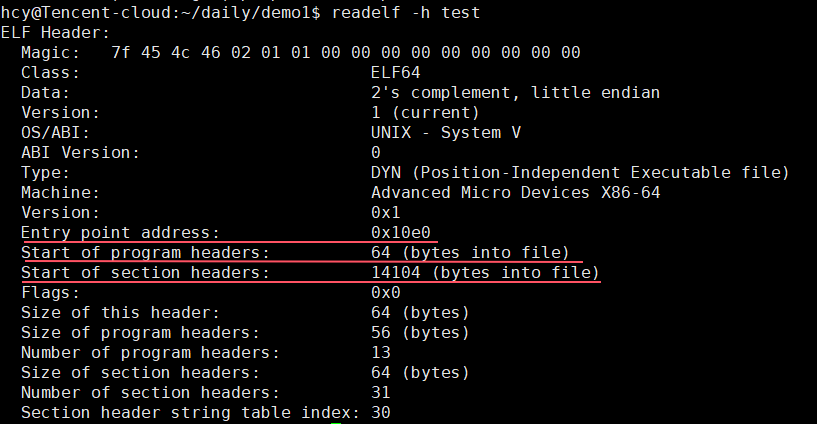- Entry point address 指向的是编译器自动插入的启动函数 (x86_64 Linux 下是