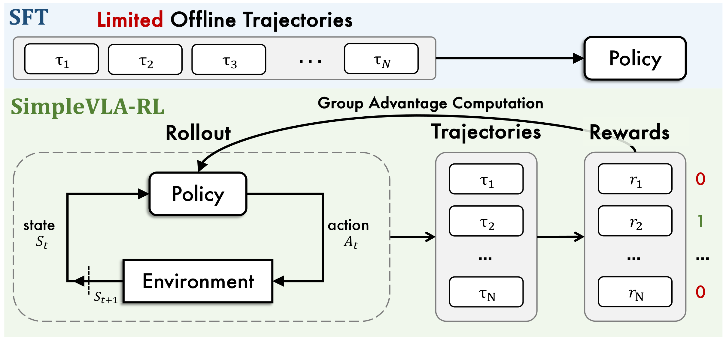 | 维度 | SFT流程 | SimpleVLA-RL流程 |