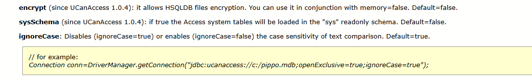 以下是UCanAccess的文档地址http://ucanaccess.sourceforge.net/site.html