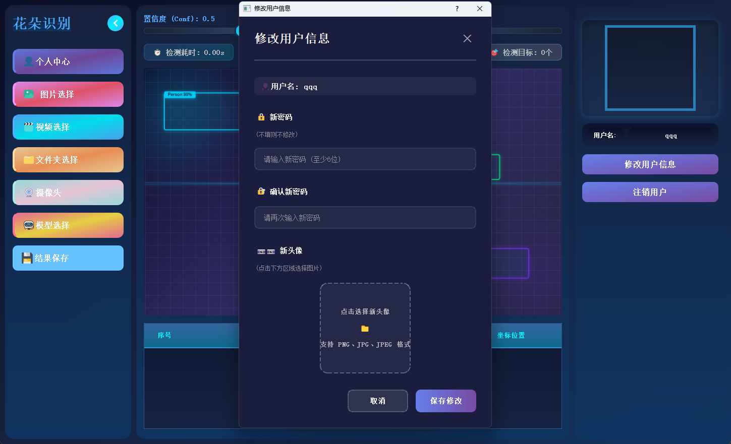 用户可在此模块中修改密码或更换头像,个人信息支持随时更新与保存。