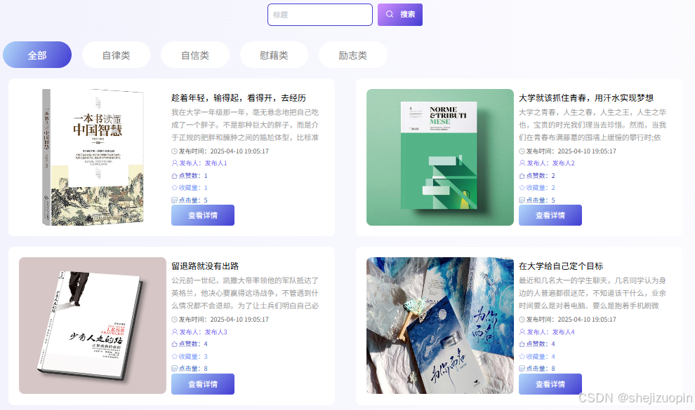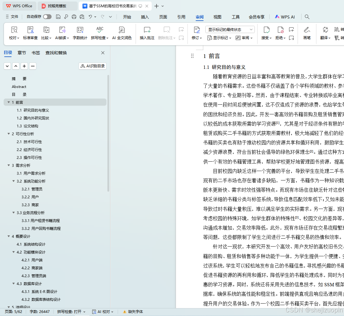 随着教育资源的日益丰富和高等教育的普及,大学生群体在学习和科研过程中产生了大量的书籍需求。然而,由于课程结束或毕业离校等原因,许多书籍在使用一段时间后便被闲置,这造成了大量资源的浪费。基于此,本文基于Spring、SpringMVC和MyBatis(简称SSM)框架开发一个高校旧书交易系统。该系统通过详细的需求调研,明确用户具体需求,实现了书籍租赁、回购与销售等多种交易模式。开发时采用前后端分离的架构设计,完成了租赁书籍、订单审核、用户管理等核心功能的开发。在平台中,提供详尽的书籍分类与标签系统,便于用户快速定位所需书籍,并且支持便捷的书籍信息发布与查询功能,方便用户快速找到感兴趣的书籍。本系统集成书籍的租赁、回购和销售等多种功能于一体,为大学生群体提供一个便捷、安全的交易平台。为二手书籍的流通与再利用提供了全新的模式,具有较高的实用价值与推广意义。