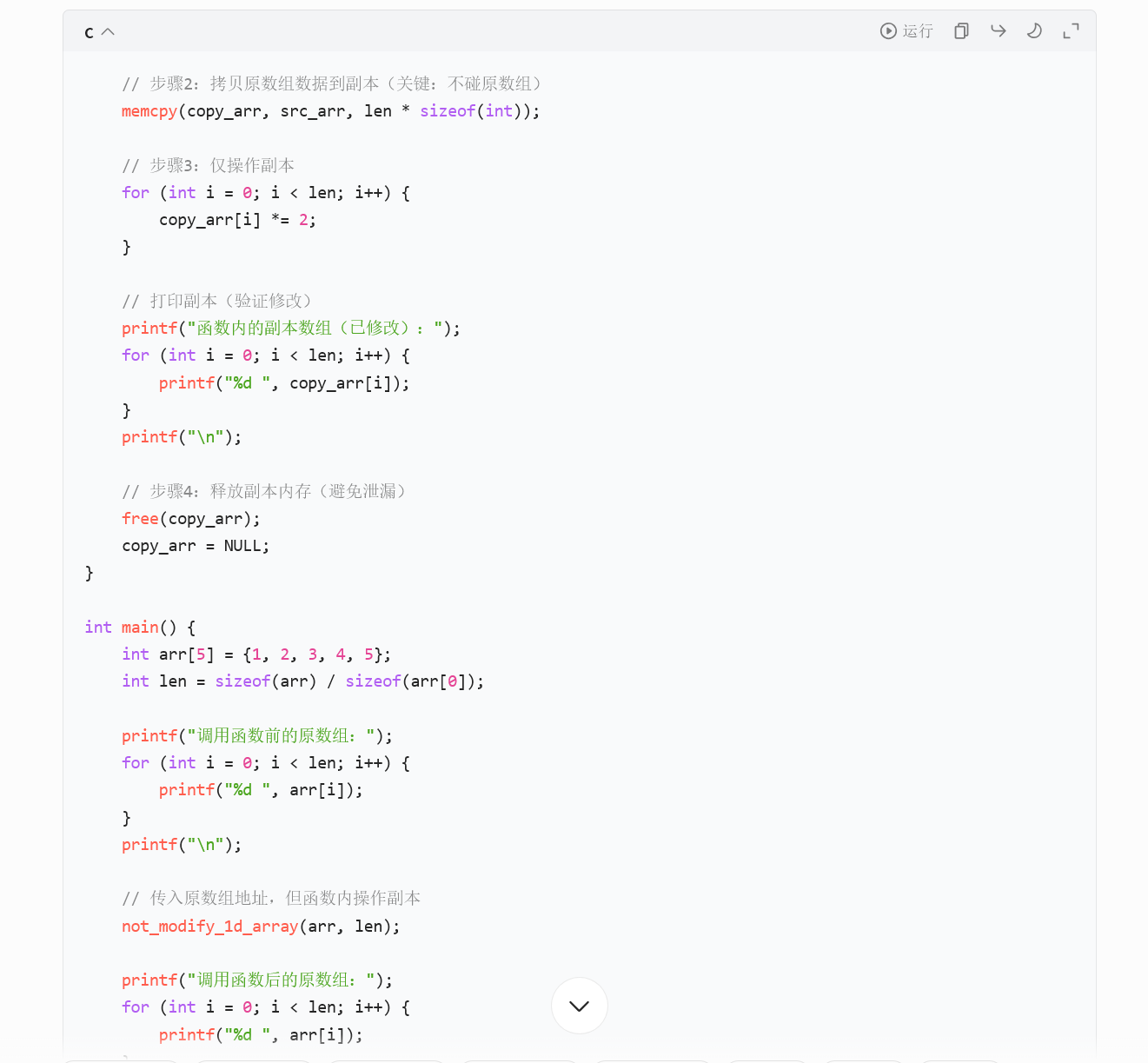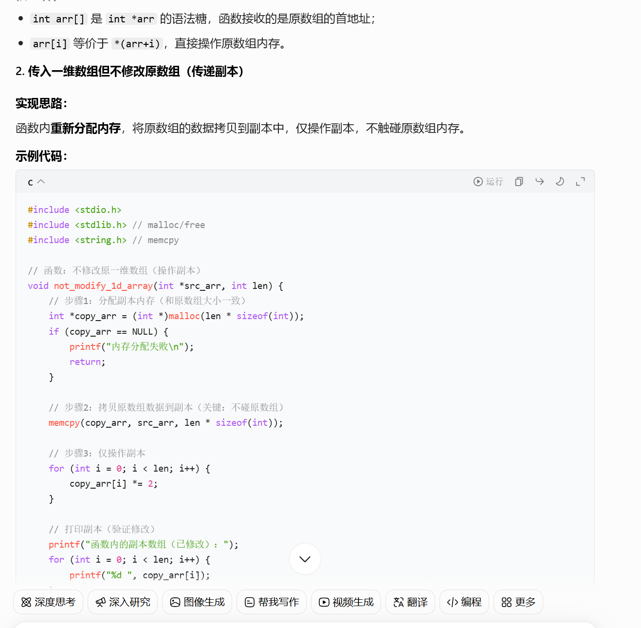 memcpy(copy_arr, src_arr, len * sizeof(int));意思是数组的copy