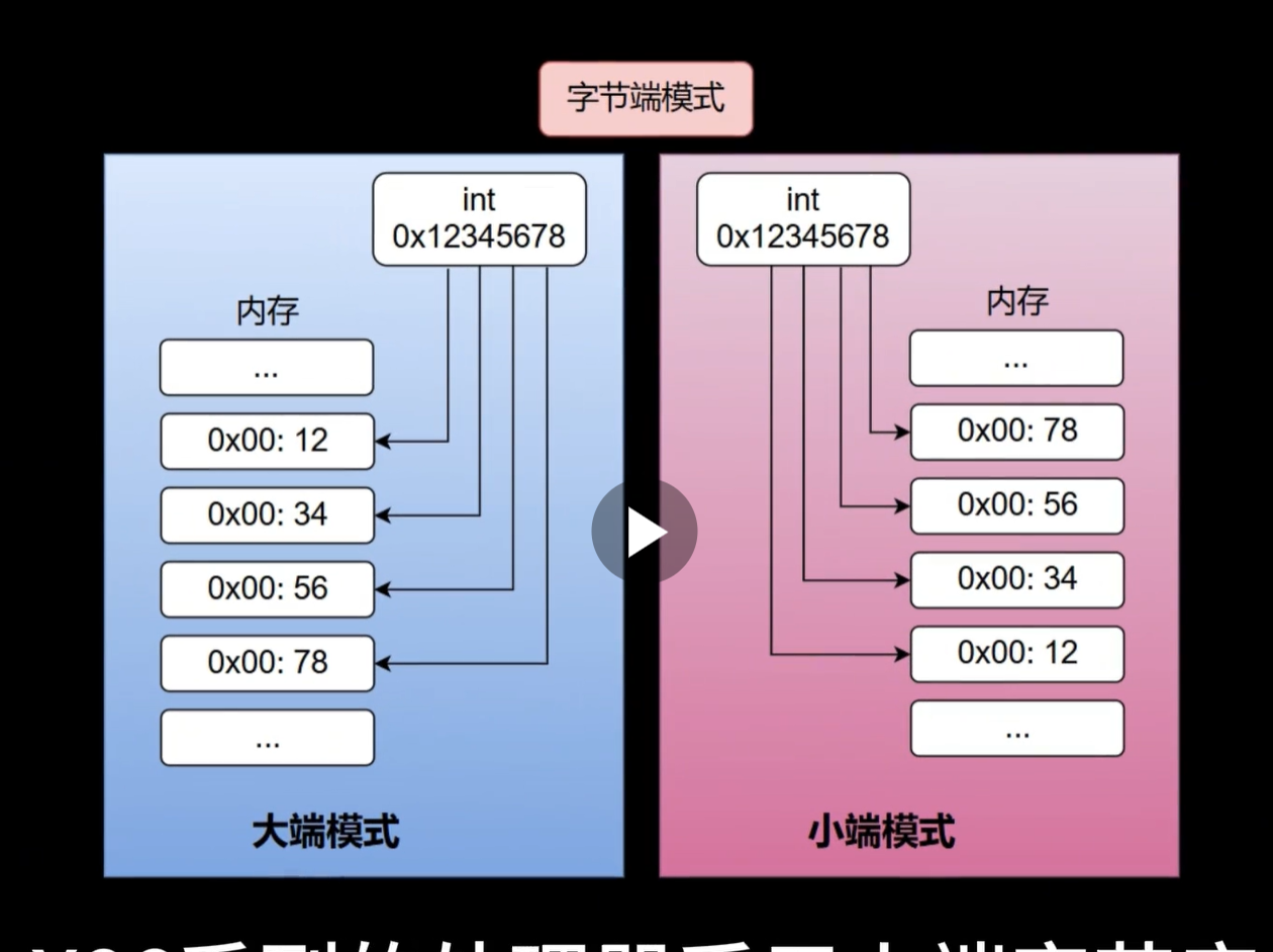 0x00地址存0x12(最高位字节),0x03地址存0x78(最低位字节),和我们手写数字12 34 56 78的顺序一致。 - 小端序: