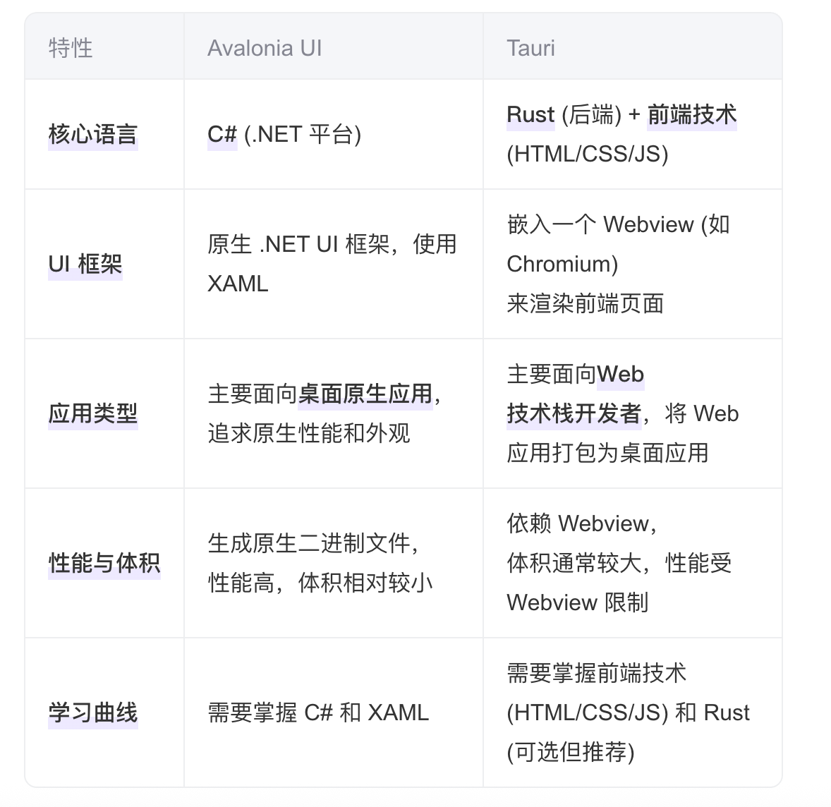 Avalonia UI 与 Tauri 的比较: