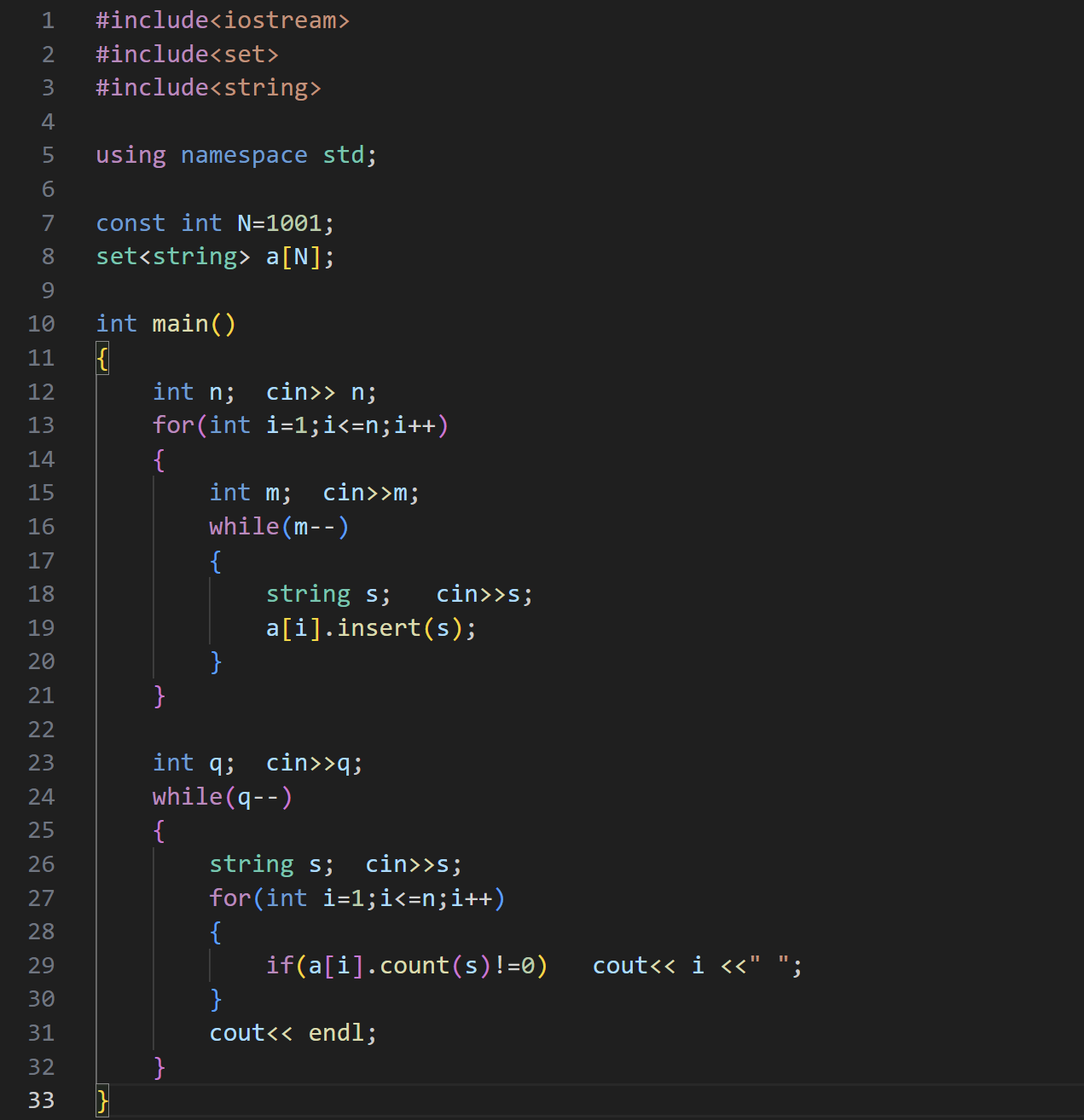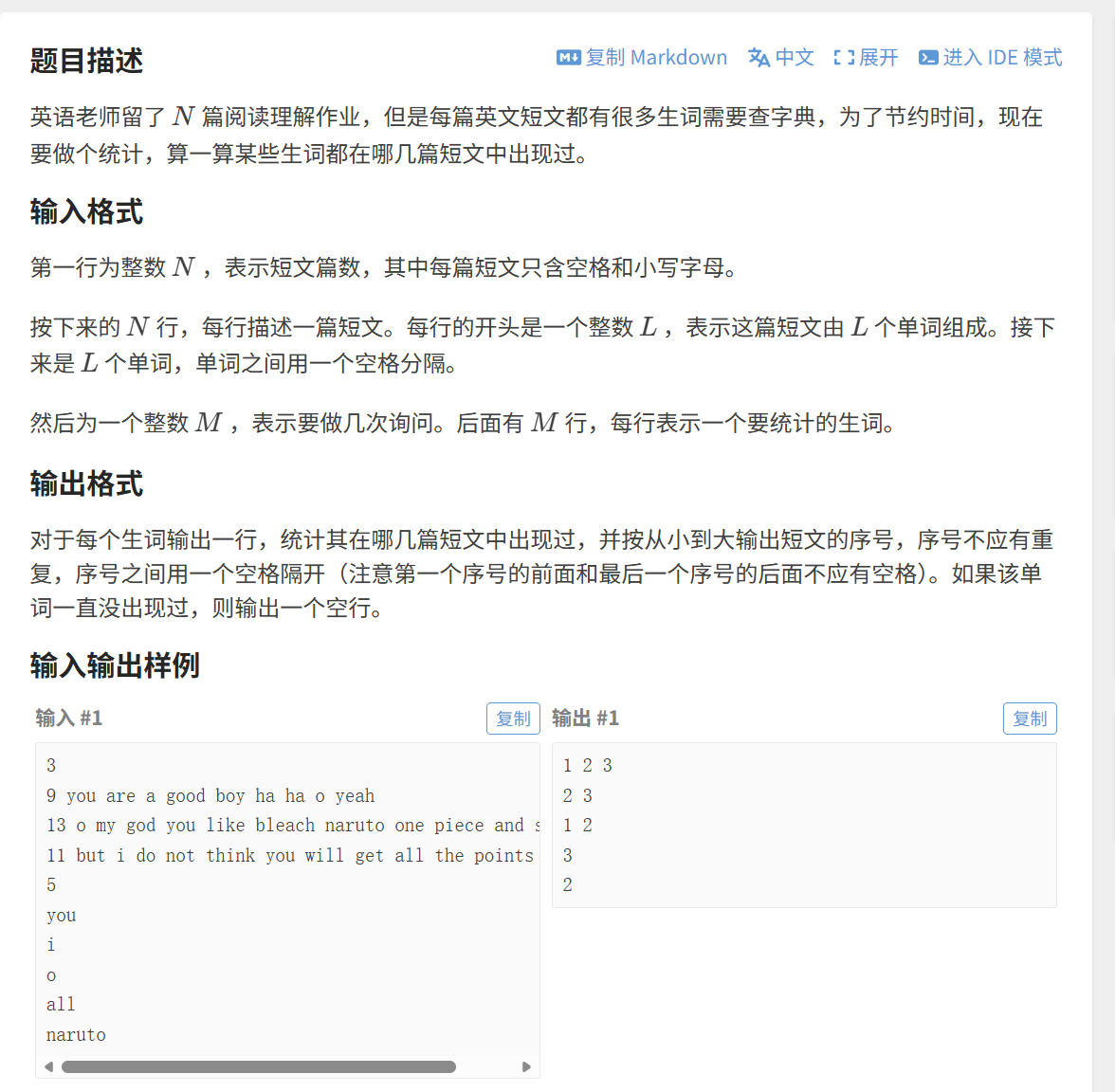 我们可以创建一个哈希数组,将每一篇中每一个单词都放到哈希表中,询问时,如果这个单词存在于哈希表中,返回数组标号