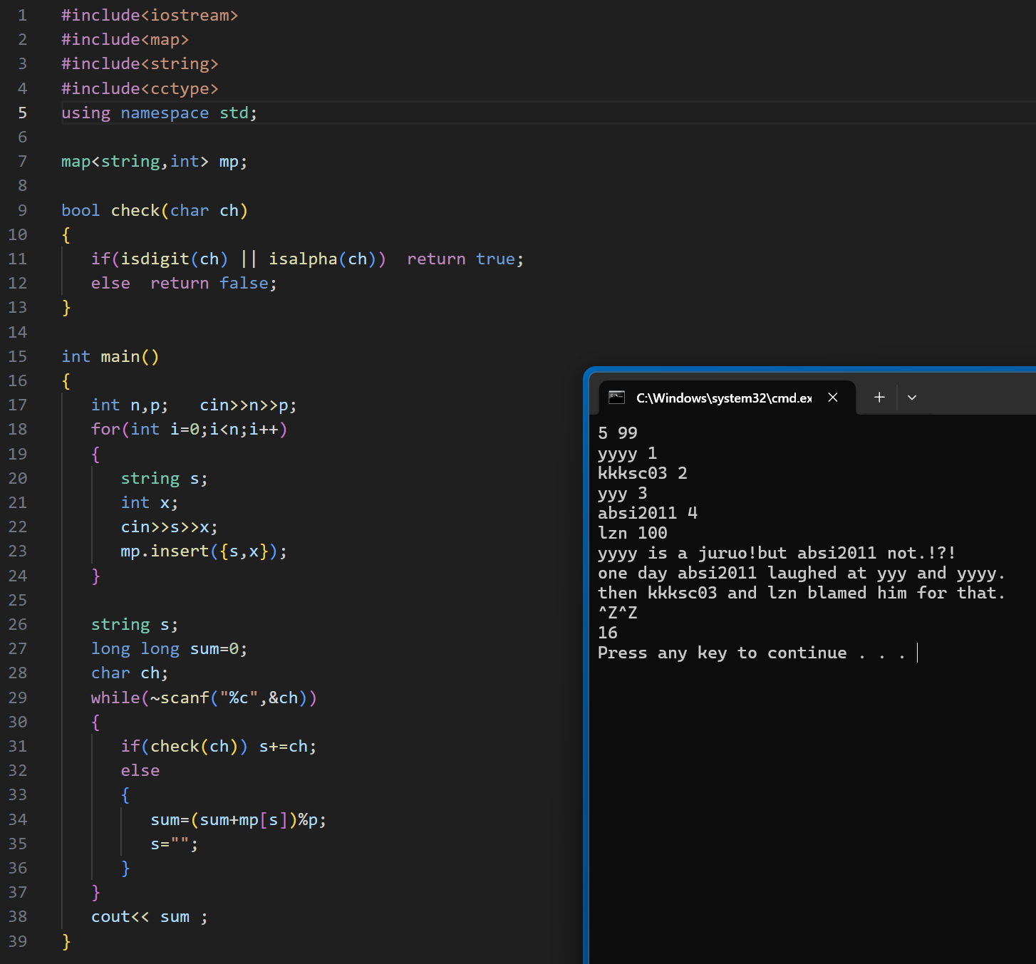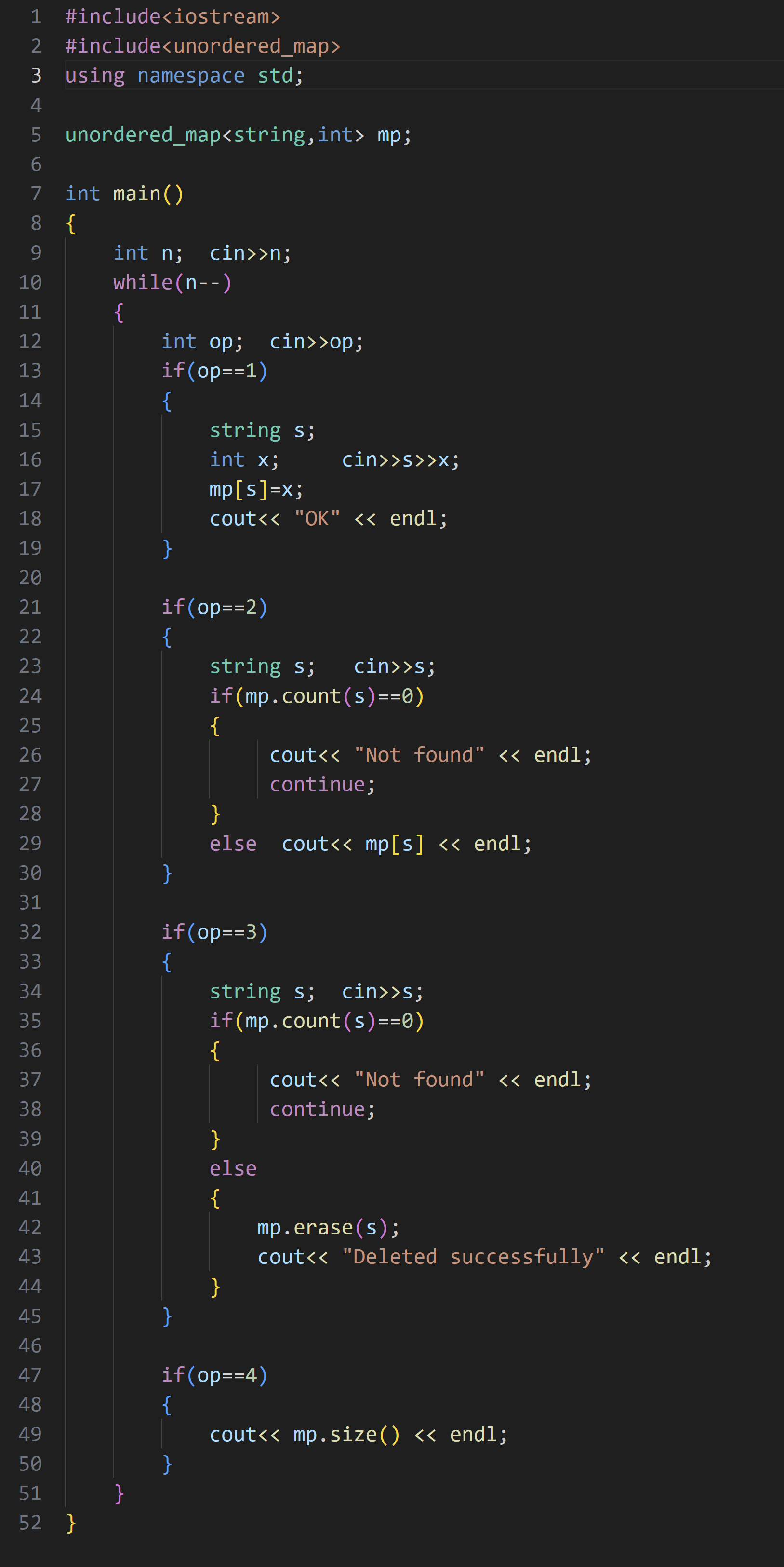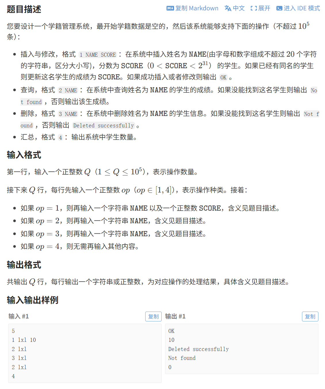 每一个 "单词" 就对应着一个数字,这里我们就可以用 map< string,int > 这个数据结构
