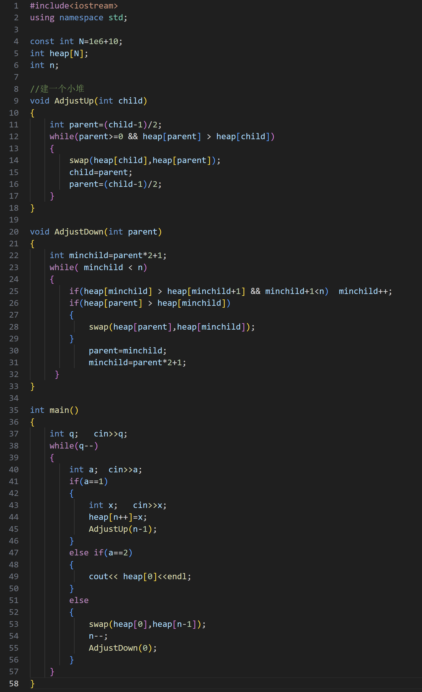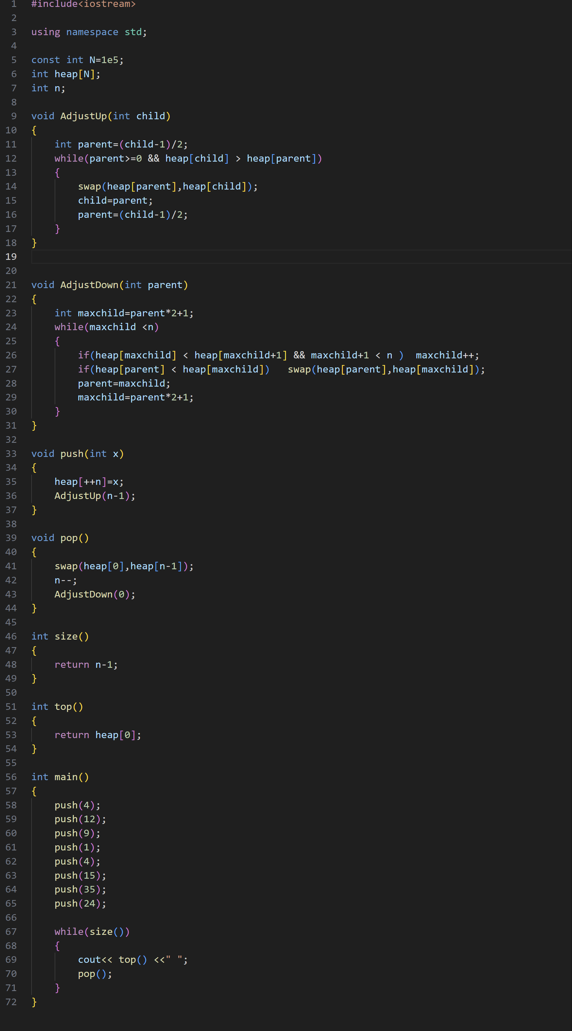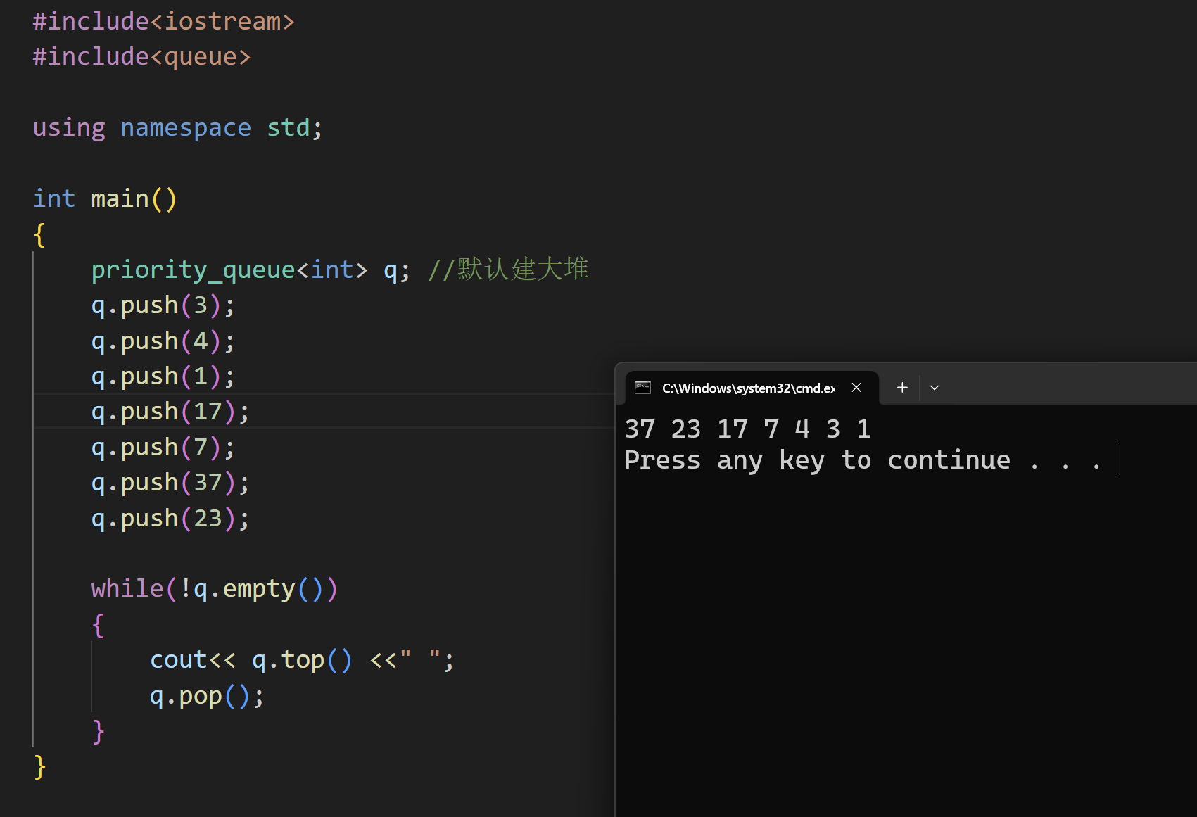 priority_queue 就是 C++ 提供的,已经实现好的优先级队列,底层实现就是⼀个堆结构。在算法竞赛中,如果是需要使⽤堆的题⽬,⼀般就直接⽤现成的 priority_queue,很少手写⼀个堆,因为省事