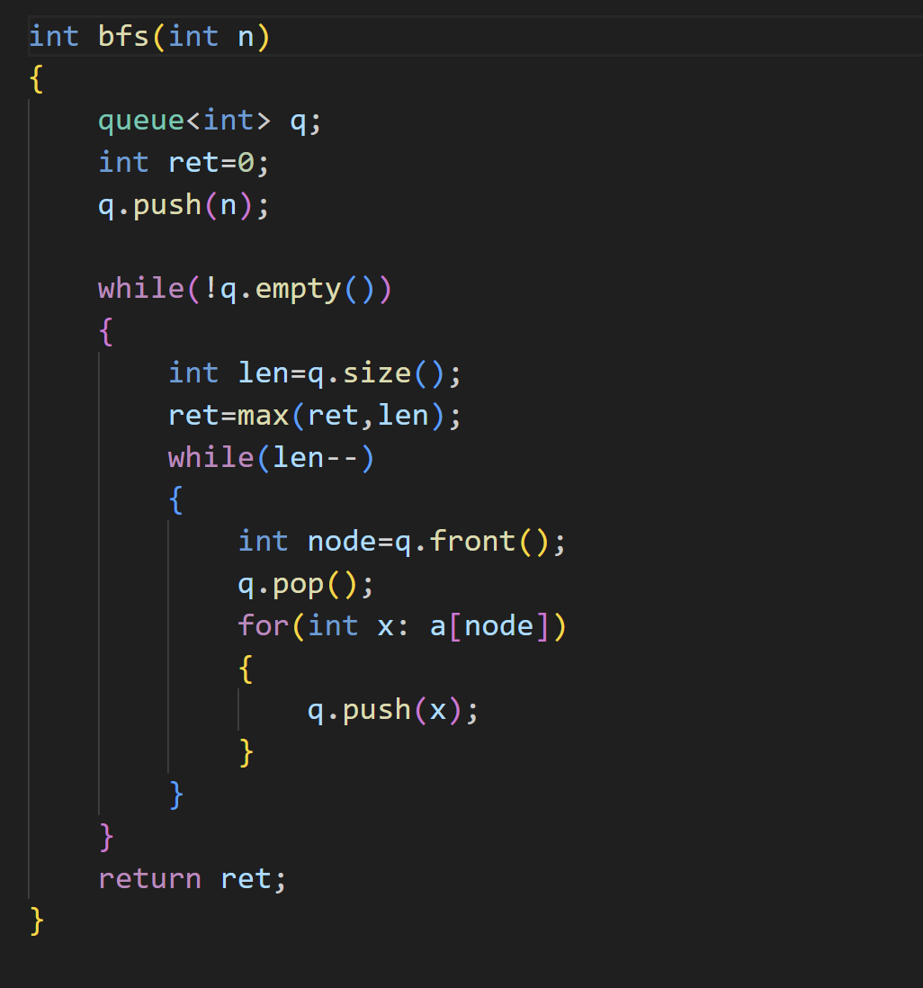 在保证每一层的节点都出队列后,并将它们的孩子入队列,此时更新长度