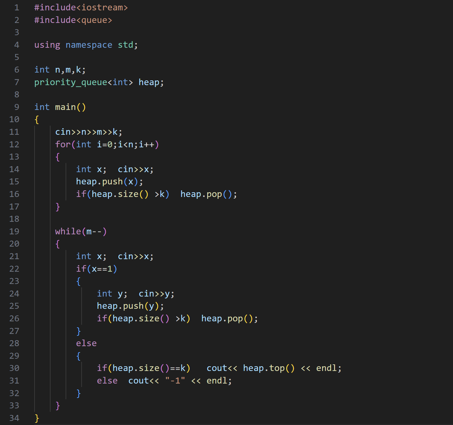 要求第 k 个小的数,就是要建一个大堆,并且保证堆的大小是 k ,要求第 k 小,就每一次返回堆顶的数据(具体解释在学习篇)