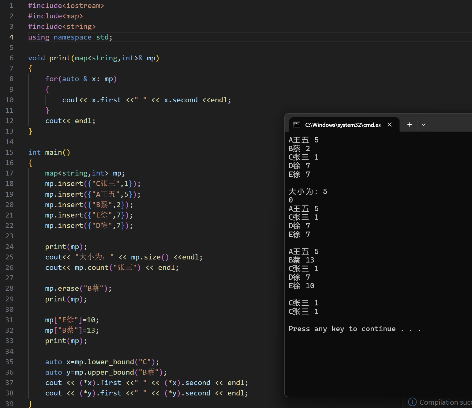 map 与 multimap 的区别: map 不能存相同元素, multimap 可以存相同的元素,其余的使⽤⽅式完全⼀致。因此,这⾥只练习使⽤ map 。