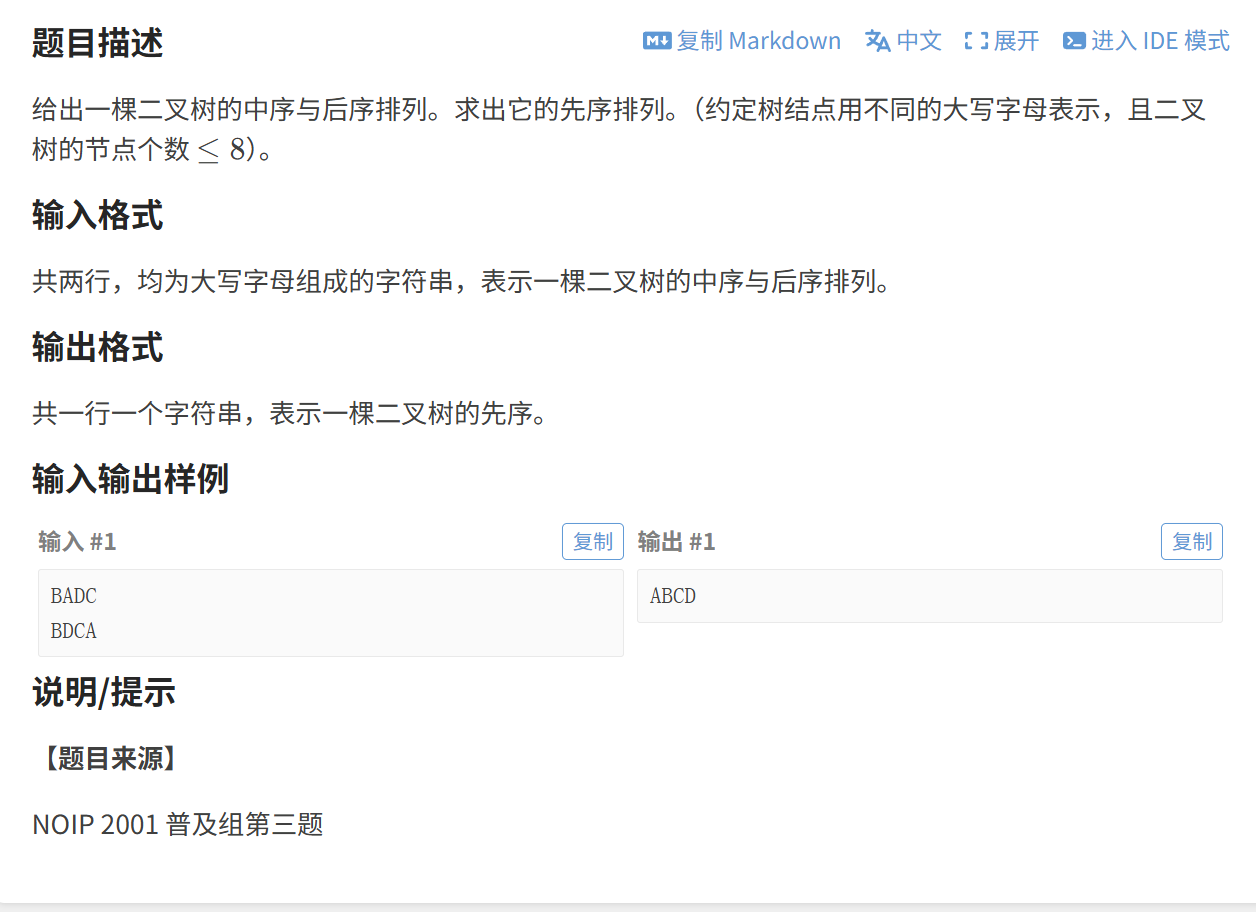 我们知道,中序遍历是按照:左子树、根、右子树 的顺序进行遍历,而后序遍历是按照:左子树、右子树、根 进行遍历