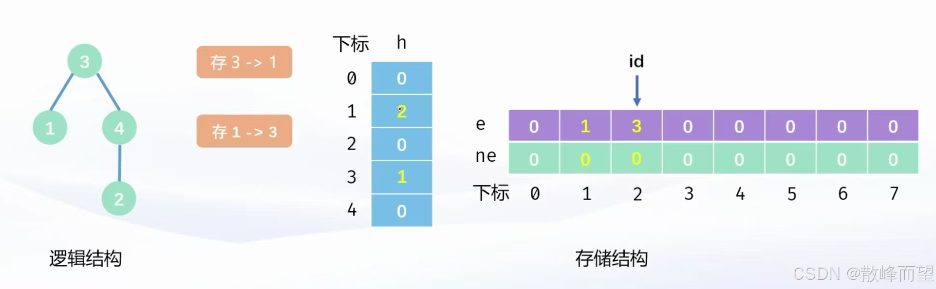 - 创建两个足够大的数组 e 和 ne ,一个作为数据域一个作为指针域