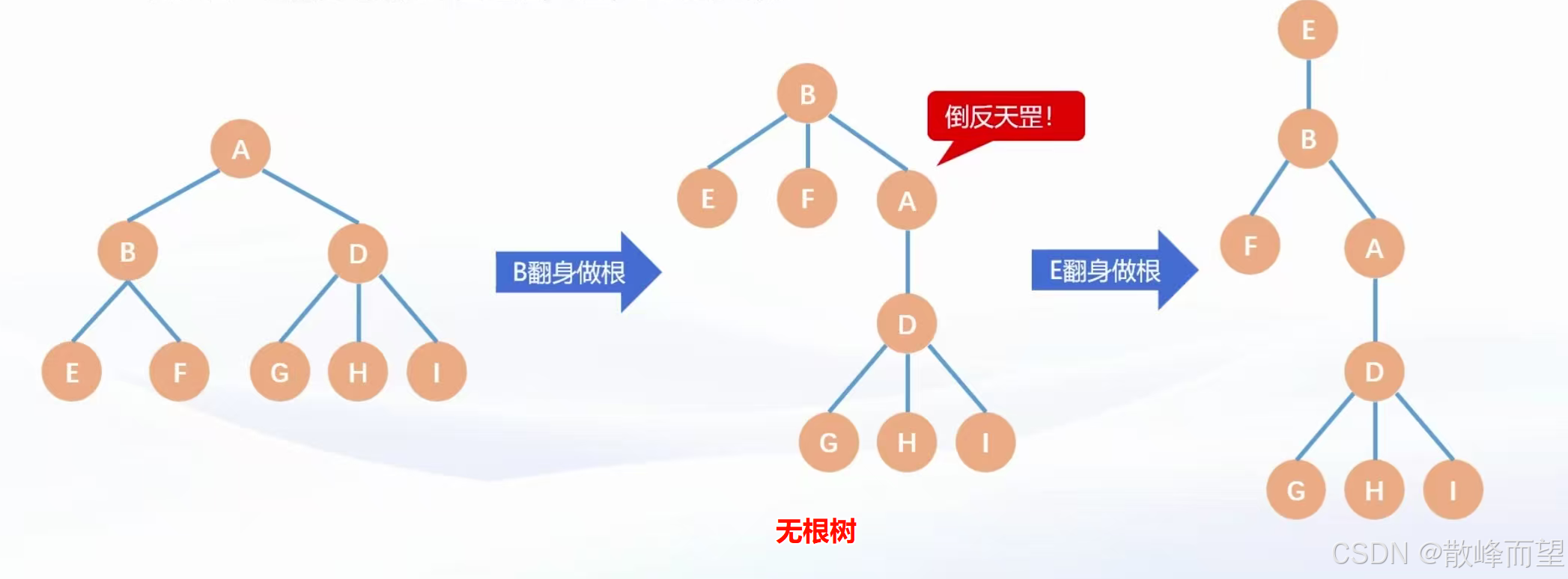 - 无根树:树的根节点未知,谁都可以是根结点。