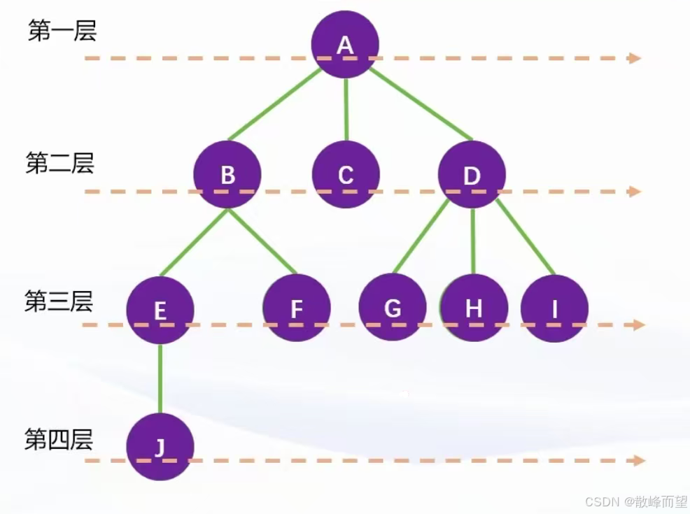 - 树的高度(深度): 树中结点的最大层数称为树的高度(深度)。