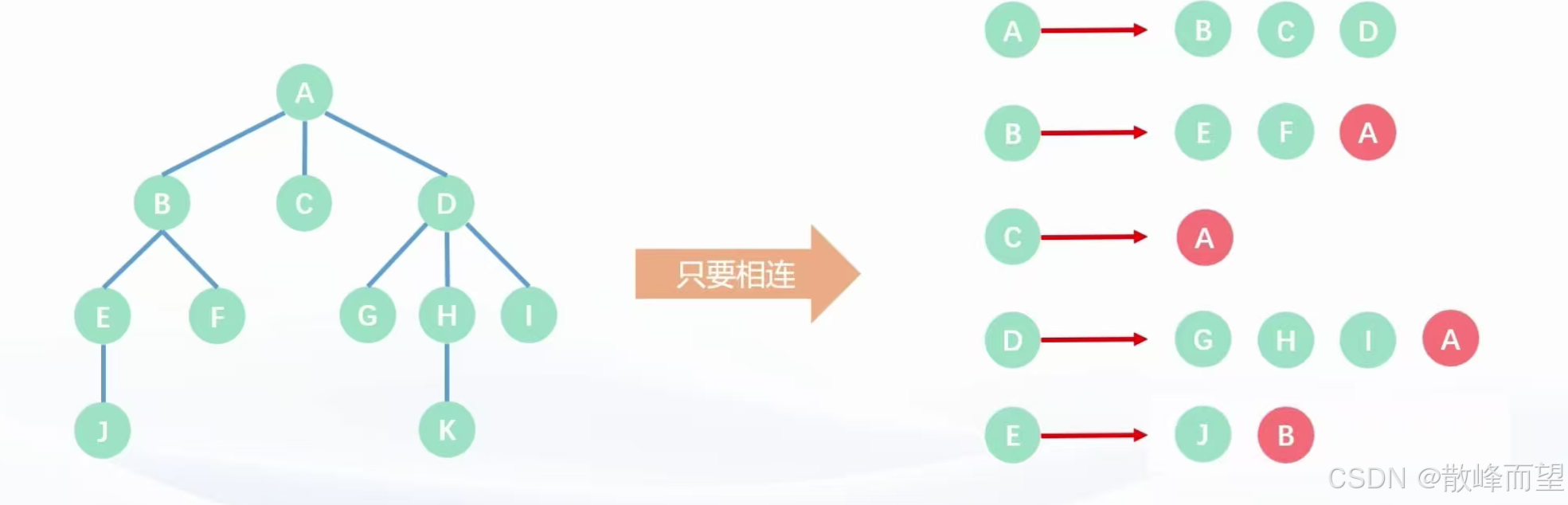 如果是在无根树中,父子关系不明确,我们会将与该结点相连的所有的点都存储下来。