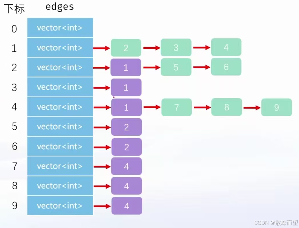vector<int> edges[N]; //edges[i]保存着i号节点相连的所有点