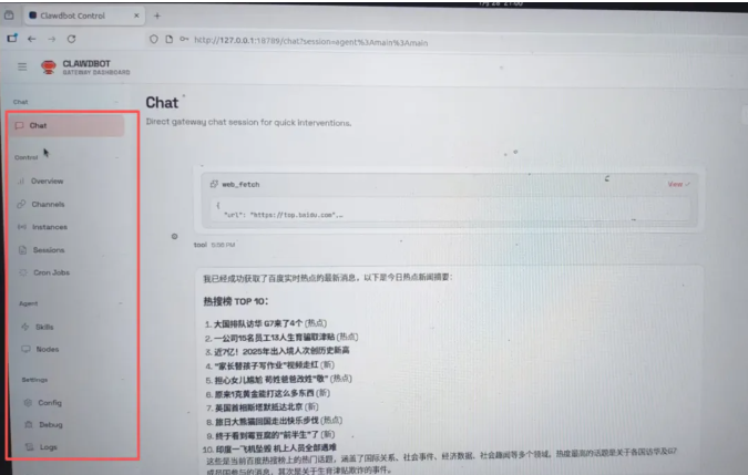 访问 http://127.0.0.1:18789/ 可打开 Web 控制台。