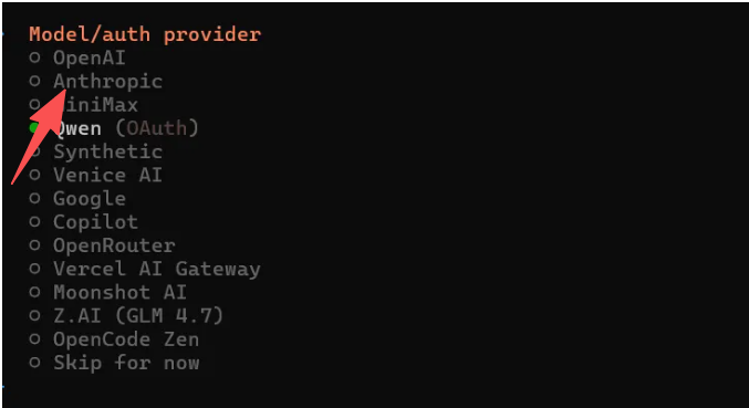 选择你的模型提供商(Anthropic/OpenAI/Google)