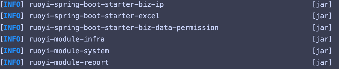 [[1;34mINFO[m] ruoyi-spring-boot-starter-protection ............... [1;32mSUCCESS[m