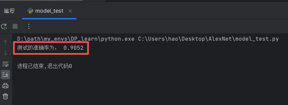 运行test文件,输出测试的模型准确率