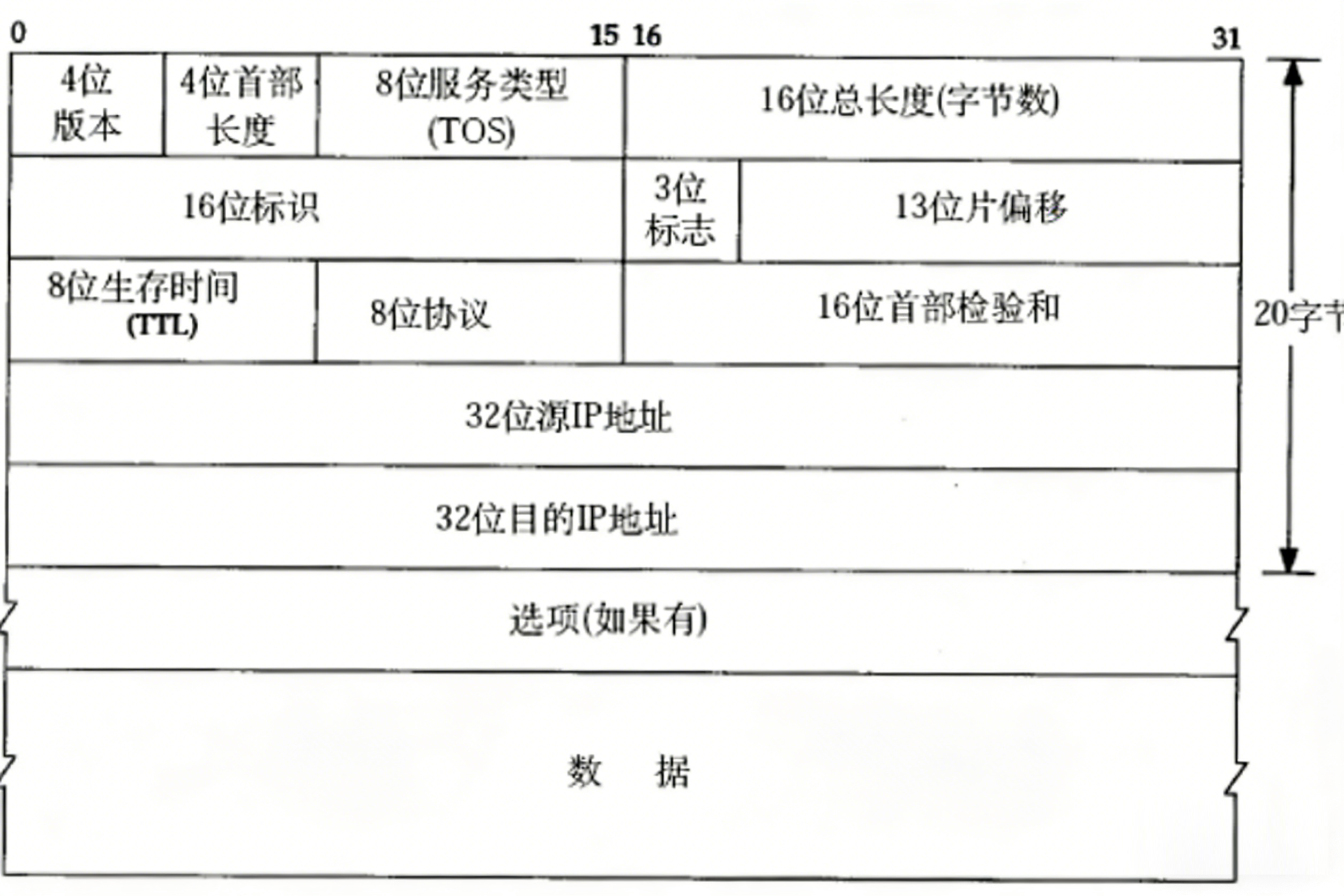 每个分片保留相同的16位标识,设置3位标志(DF禁止分片位、MF更多分片位)和13位偏移量(以8字节为单位)。