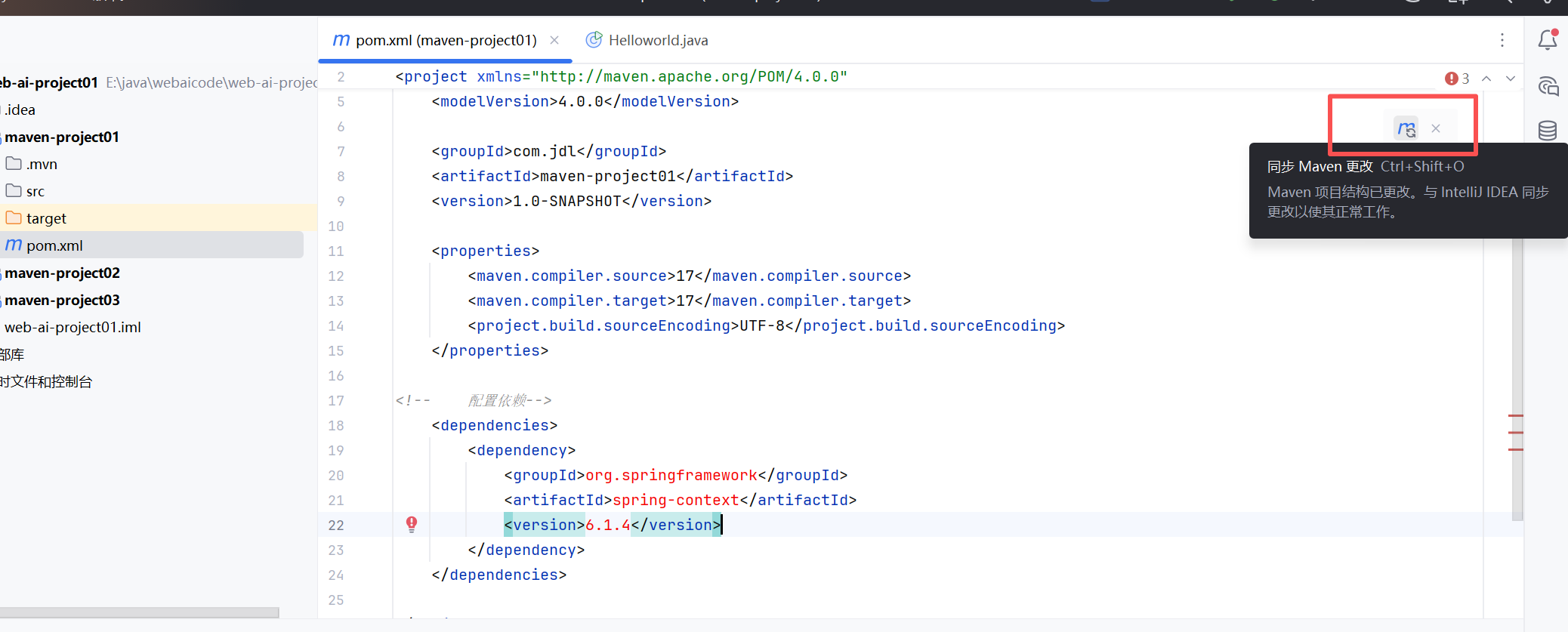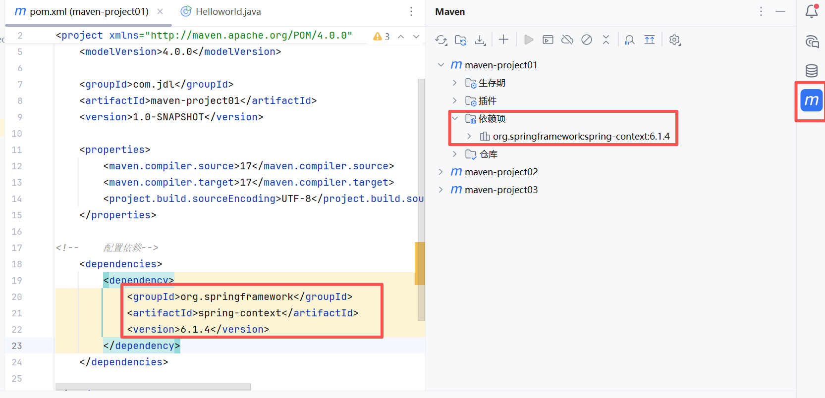 创建好maven项目之后,会自动生成pom.xml配置